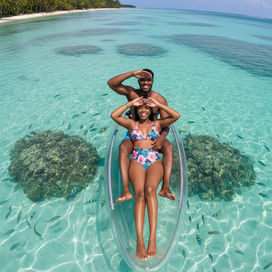 Capture your unforgettable moments in a breathtaking, one-of-a-kind setting! Glide effortlessly over crystal clear turquoise waters in our transparent kayak while our professional drone photographer captures stunning, high definition aerial photos of your special experience. This is more than a photoshoot, it’s an unforgettable travel memory.